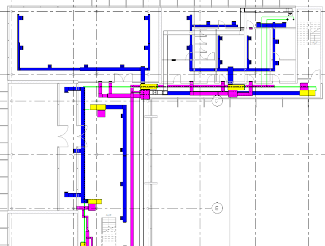 One key to successfully routing Cable Tray, Duct Work and Piping is leaving enough room for the fittings to go in, in order to make the transitions and 'bends' either laterally or vertically.